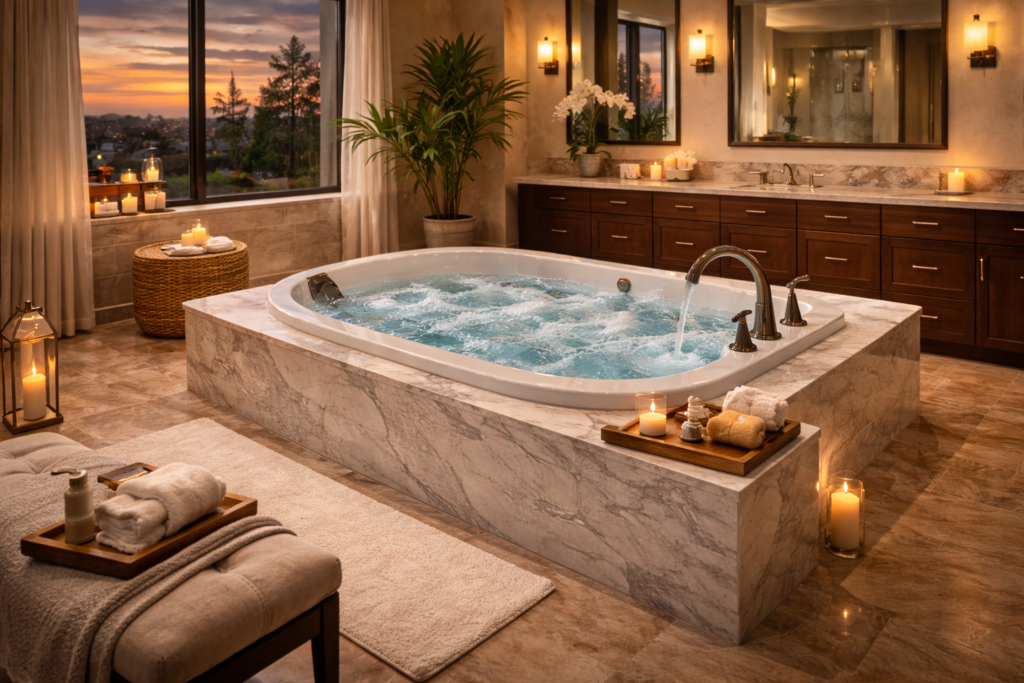 If the tub is too large, the room can feel crowded and the equipment may be harder to access later. A jetted tub needs enough space not only to fit visually but also to be serviced and used comfortably over time.