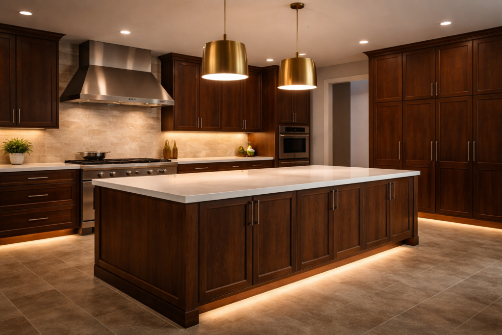Cabinet size, countertop material, overhang depth, sink decisions, electrical locations, lighting placement, and walkway clearances should all be resolved before fabrication. Those choices affect how comfortable and useful the island will feel once it is installed.