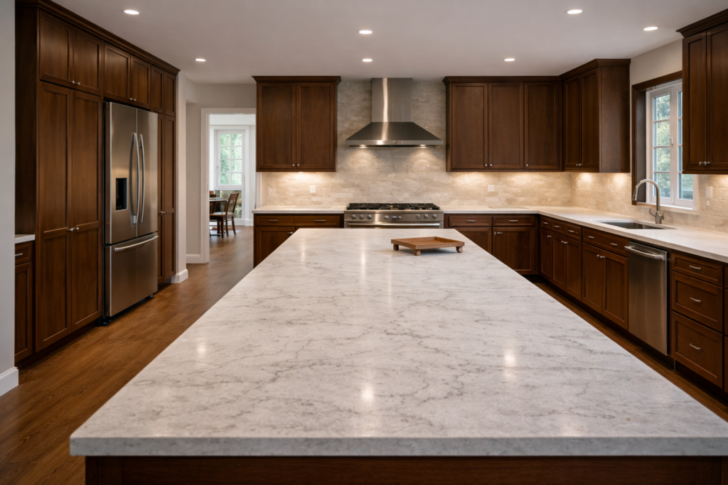 Common materials include cabinet boxes, countertop materials, framing lumber, plumbing fittings, electrical cable, drywall, trim, flooring patch materials, and support components for islands or appliance walls. The exact list depends on how much of the kitchen is being rebuilt. When comparing stone surfaces, it can help to review Natural Stone Institute guidance.